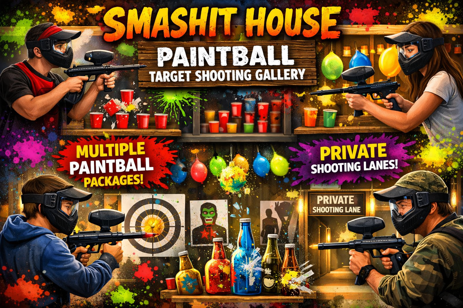Experience indoor paintball target shooting near Fort Lauderdale at The Smashit House. Aim, shoot, and hit your targets in a private setup designed for fun, competition, and stress relief. Perfect for date nights, groups, and anyone looking for a unique indoor activity in South Florida. Book your session today.